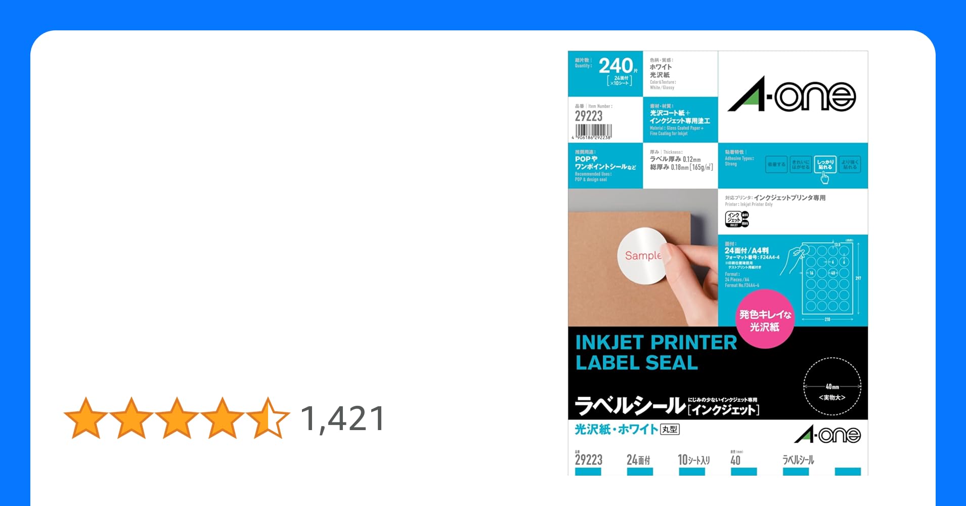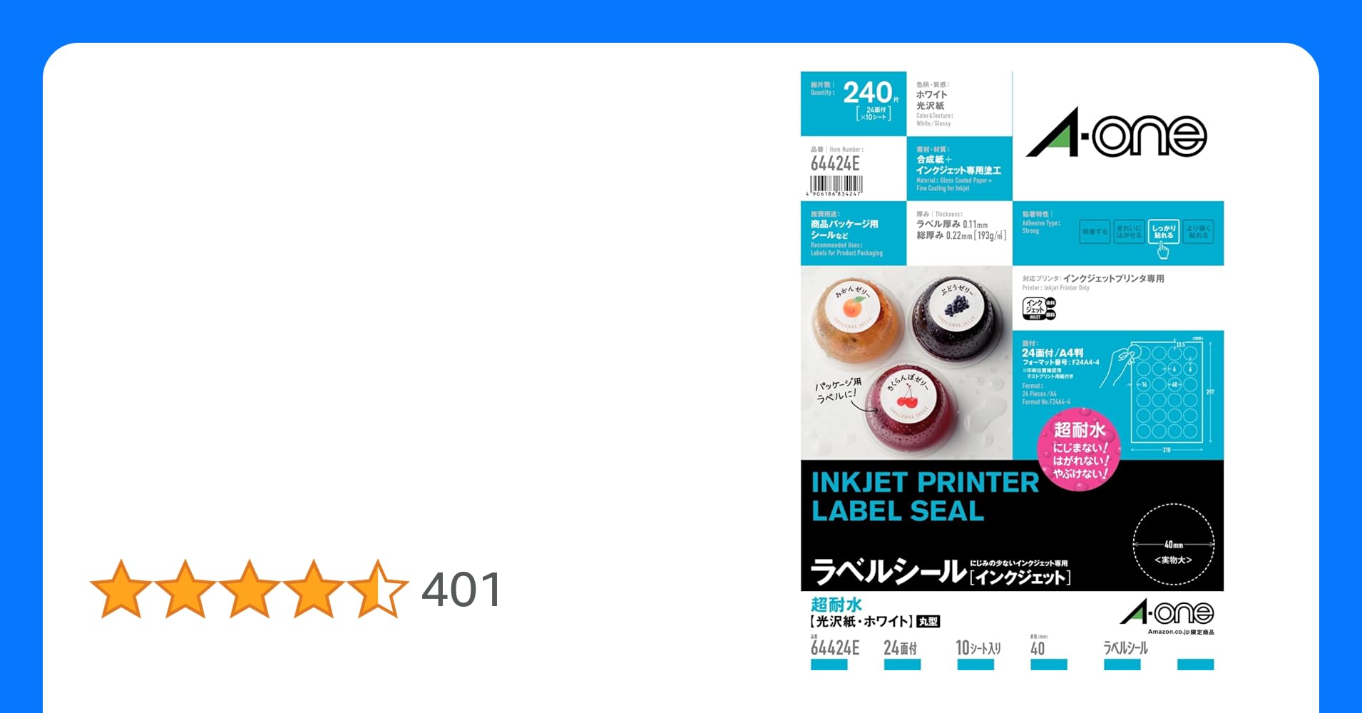 他にもサイズ違い(1枚に何面あるか)、光沢(ツヤがある)かマット(ツヤなし)か、撥水かどうかなどでいろんな種類のラベルシールがあるので探してみてください。