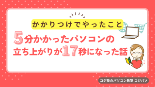 ― かかりつけだからできたこと ―by 萩市のパソコン教室 コジ塾のコジパソ 今回お預かりした生徒さんのノートパソコンは、電源を入れてから使えるまで 約5分 かかっていました。 パソコンを開くたびに、「電源を入れて、PINコー...